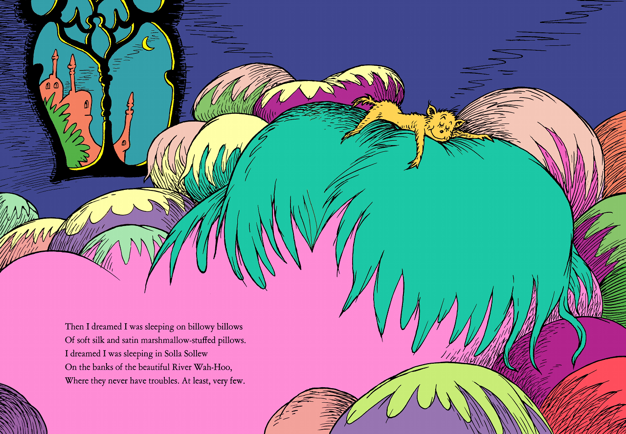 My favorite illustration from I Had Trouble in getting to Solla Sollew by Dr. Seuss.