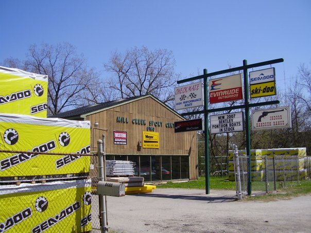 When I worked and lived in Dexter, I frequently drove past Mill Creek Sports Center. And when I say frequently, I mean every day for twenty-nine years. Needless to say, the outside was a very familiar scene with the pontoon boats and stacks of Sea-Doos ready for sale. It was the home of the local seasonal buck pole with the occasional group of protestors. Every November at the opening of firearm deer season, the street in front of the Center would be clogged with pick-up trucks and pedestrian traffic as the first bucks brought in would hang from the temporary scaffold built for the occasion.