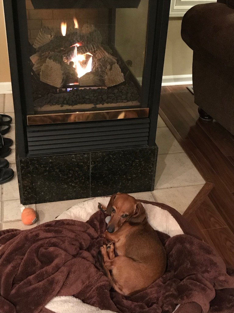MOH quickly adapts.  The furnace is cranking and his winter coat is hanging in the closet.  I admit I’m excited to have seat warmers in my car this year for the first time.  The dynamic duo take a little longer to adjust, still searching the living room floor for spots of sunshine to nap in, and wanting to go out on the sunny deck, only to discover it is too chilly and breezy for comfort.  There are plenty of blankets on the couch or in the dog beds, but that’s a year round thing for doxies.  (In case you’re not familiar with dachshunds, most like to burrow.)