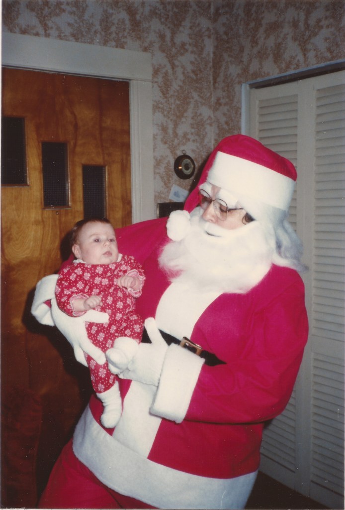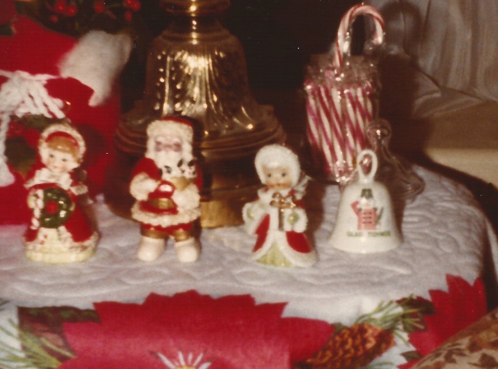 I don’t remember if my mom had a particular time that she decorated for the holiday. Staple ornamentation at our house included a multi-color lighted tree in our living room, five count electric candelabra for each of our main floor windows, and a huge Santa face that went in the upstairs front bedroom window. She also had a cathedral window that belonged on the piano. There were others, but these are the ones that I’ll remember for all of my life.