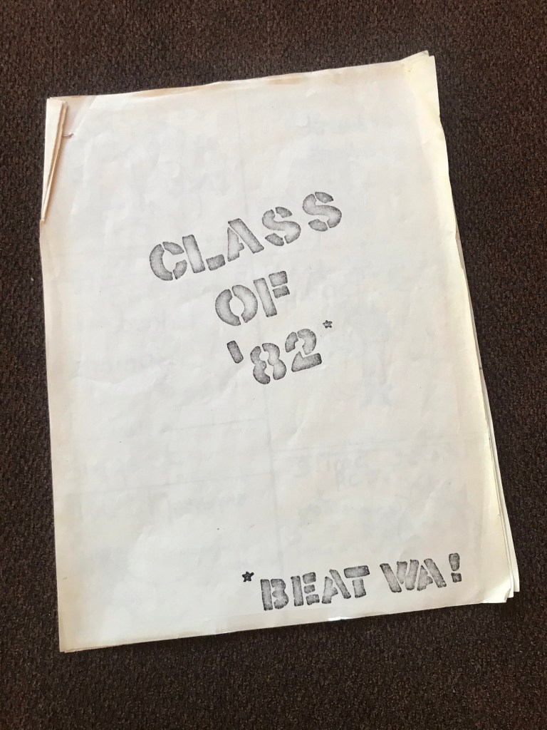 It was several pages stapled together and showed the results of a high school mock election. Are you familiar with this activity? Did you participate when you were in school? Students are presented with a list of highly important categories and vote for their classmates to receive one of these distinguished honors. Shyest. Best Dressed. Most Athletic. I sat down on the guest bed and perused the election categories presented at MOH’s high school in 1982. I was not surprised to see MOH’s name under Biggest Flirt. But his school had many more categories than mine. Two dated categories were Most Preppy and Rowdiest. Then there were some head shakers. Biggest Eaters. Really? That seems like an office nobody wants to be elected to unless they are looking to be the next host of Man vs. Food. Biggest Boozers and Biggest Losers. Those seems like categories that might better have been left off of the ballot. Not to be a spoil sport (thankfully not one of the categories), but underage drinking was illegal, and I’m going to go out on a limb and say that being voted Biggest Loser of your class just might have a negative impact on an individual’s self-esteem. But I’m sure it was all meant in good fun. I did have a good laugh observing that the Best Liked Teacher, Mr. Southwell, also won the Easiest Grader category. I’m guessing that was an unrelated coincidence. (Wink, wink.)