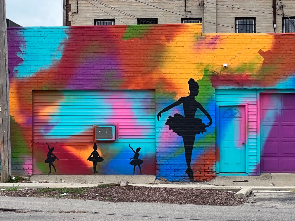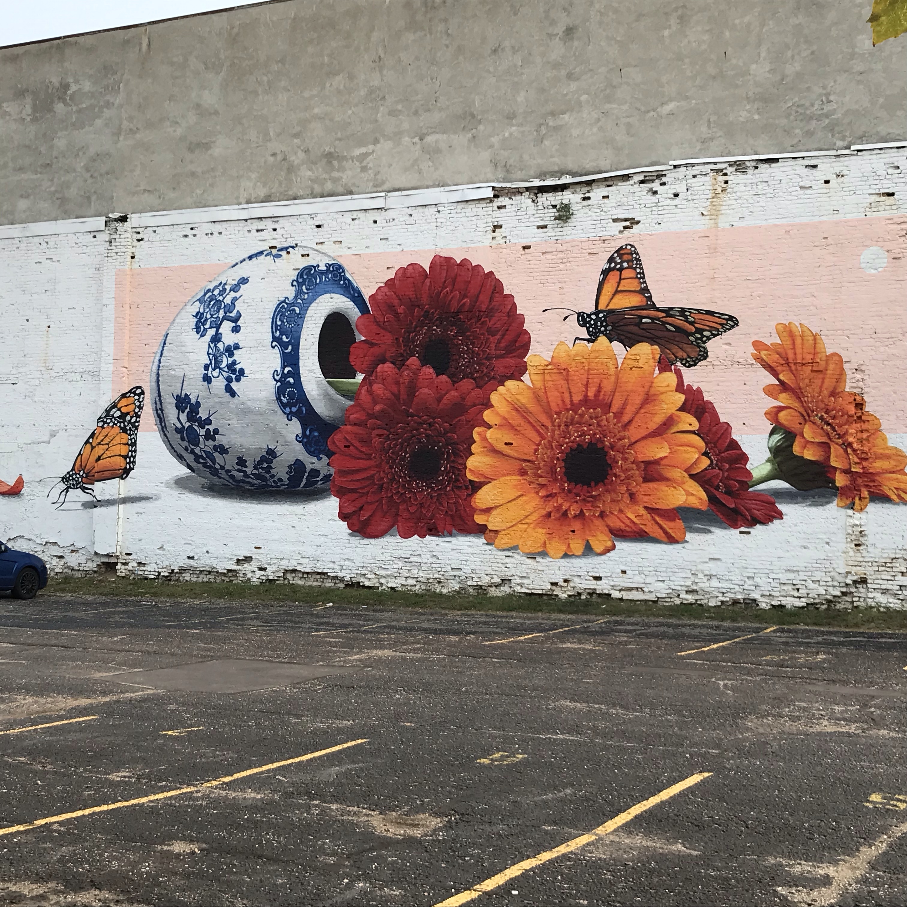 When driving through town, I always enjoy discovering one that I haven’t noticed previously. Here are two favorites that I see along my route to visit my son. The one on the left is on the side of the Grace School of Dance. See the heartfelt story behind this beautiful mural by clicking on this mlive link.