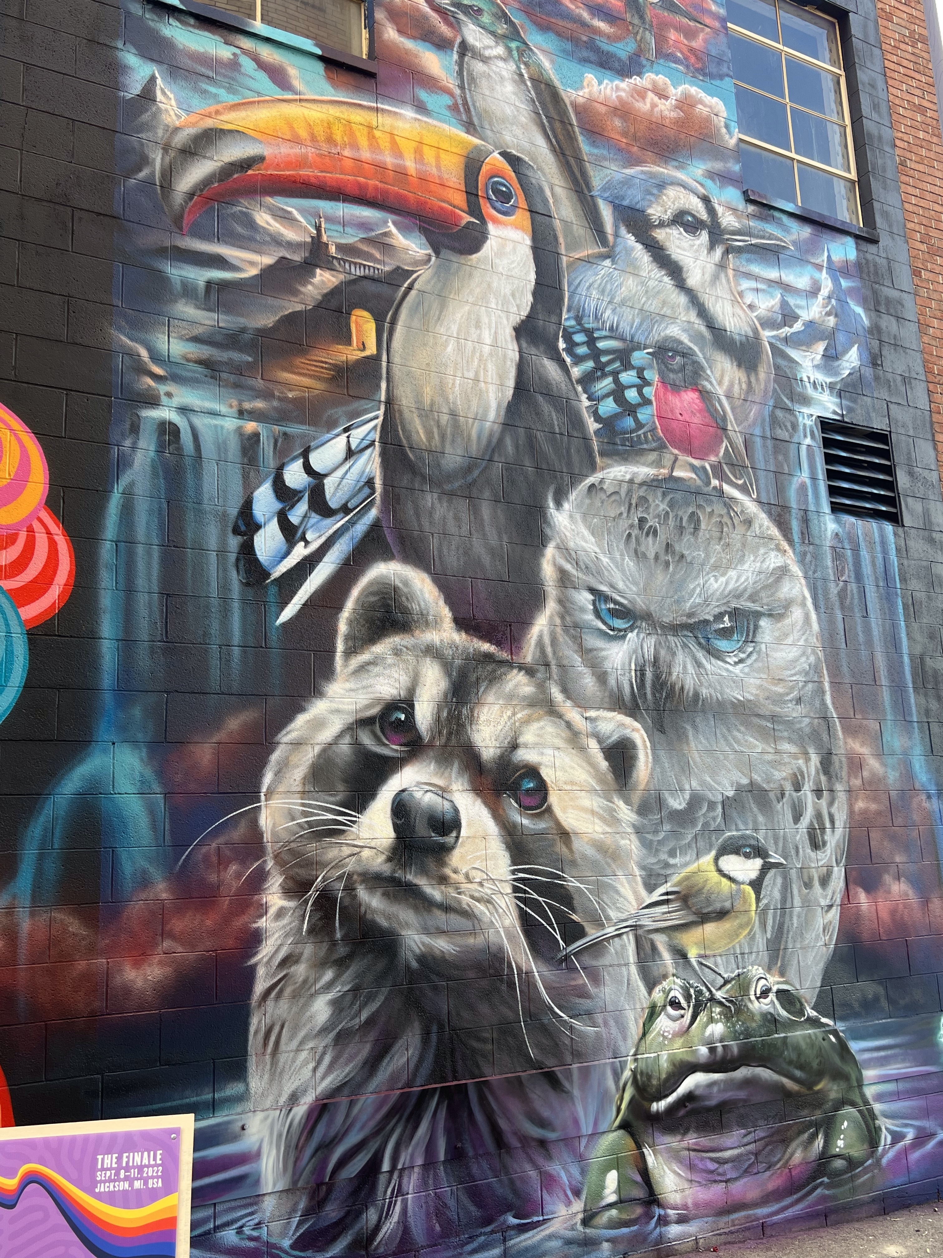 In September 2021, I went on a Bright Walls tour in Jackson, Michigan, and I wrote a blog about it – Bright Walls in Jackson. There are SO MANY beautiful murals in downtown Jackson, and I was excited to attend the 2022 Bright Walls Finale event this weekend. They have added more than 20 murals in this final year of the multi-year event.